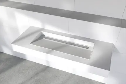 Seks indstillinger , raffineret designwedi Sanbath modulær håndvask serie tilbyder seks indstillinger. Vælg din foretrukne størrelse, med eller uden sideafsatser, og kombiner den med enten wedi Fundo afløbsrist eller den slanke 35 wedi Fundo bruseafløb 1.0. Den modulopbyggede håndvask er let, men alligevel robust og understøtter belastninger på op til 150 kg. Blandingsbatteri beslag og sikkerhedsbeslag er inkluderet som standard.