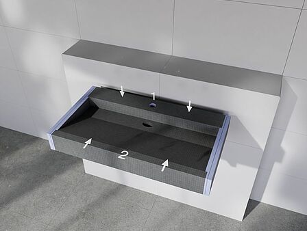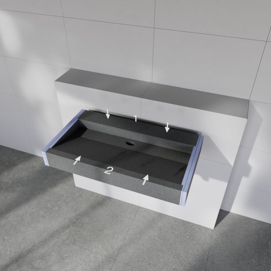 Sanbath håndvasken giver maksimal fleksibilitet i planlægningen af badeværelset og en lastkapacitet på op til 150 kg. Det kan fliselægges, skæres til i den ønskede længde og installeres uden synlige beslag.
