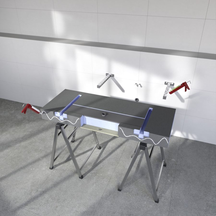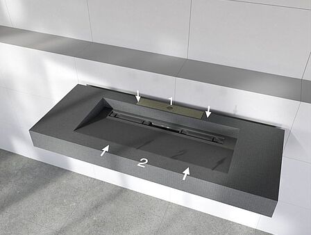 wedi Sanbath modulær håndvask serie tilbyder seks indstillinger. Vælg din foretrukne størrelse, med eller uden sideafsatser, og kombiner den med enten wedi Fundo afløbsrist eller den slanke 35 wedi Fundo bruseafløb 1.0. Den modulopbyggede håndvask er let, men alligevel robust og understøtter belastninger på op til 150 kg. Blandingsbatteri beslag og sikkerhedsbeslag er inkluderet som standard.