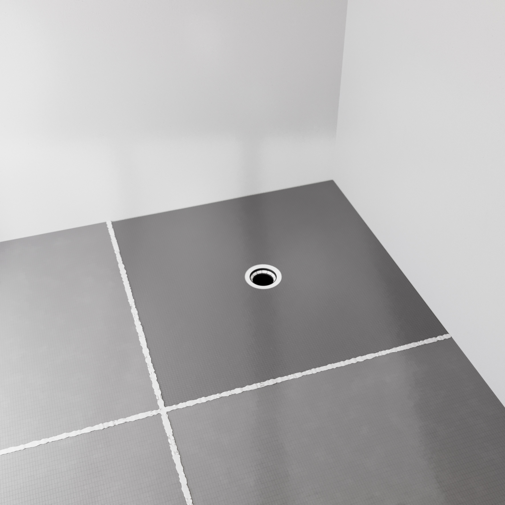 - Komplet gulvsystem med bruseelement, forlænger-plader og afløb