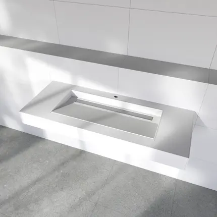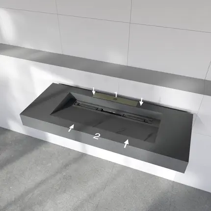 Six configurations, refined designThe wedi Sanbath Modular washbasin range offers six configurations. Choose your preferred size, with or without side ledges, and combine it with either a wedi Fundo channel cover or the slimline 35 mm wedi Fundo shower channel 1.0. Lightweight yet robust, the modular washbasin supports loads of up to 150 kg. Tap mounting and support brackets for secure installation are included as standard.