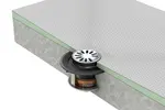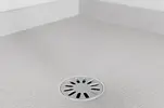 The shower element and extension boards consist entirely of recycled, pressureresistant PET foam and are designed for high point loads, such as wheelchairs, shower chairs or patient lifts. At the same time, the system is easy to work with: cuts can be made using standard or electric saws, and dust generation is minimal. Drainage options include horizontal or vertical DN50 point drains, optionally with a fire protection collar. A 360° rotatable drain connection, a cutting template and a clamping ring for secure PVC connection ensure reliable detailing.