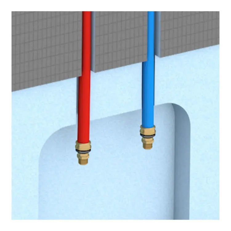 - The factory-integrated cold and hot water pipes ensure an efficient and safe installation