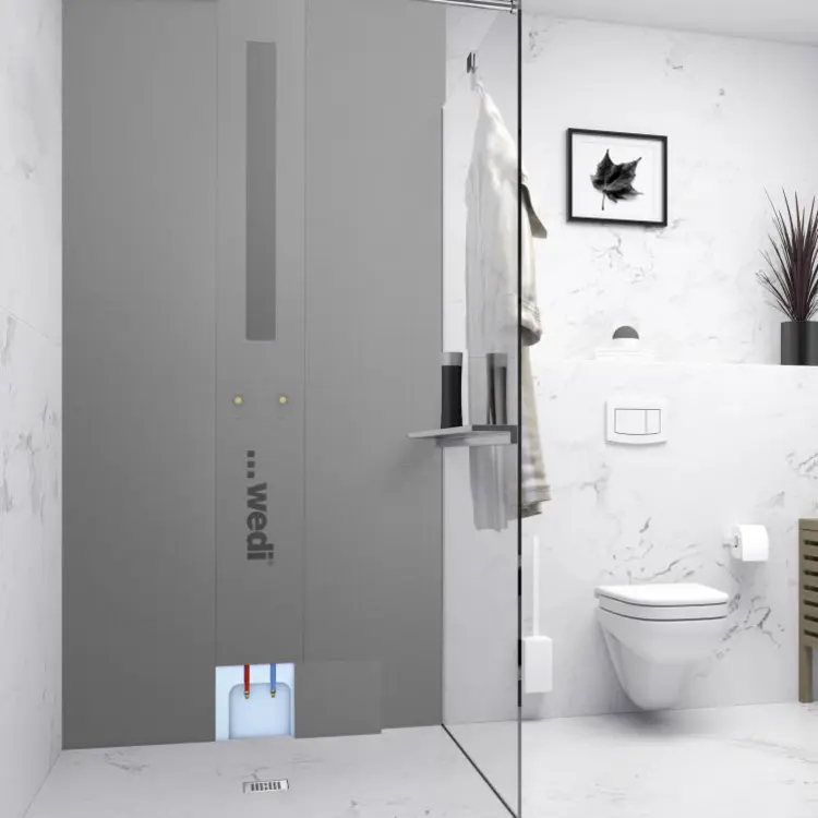 The wedi Sanwell XS shower wall elements are approved for private and commercial use indoors under direct use with service and cleaning water. Consult wedi Application Technology for special applications.