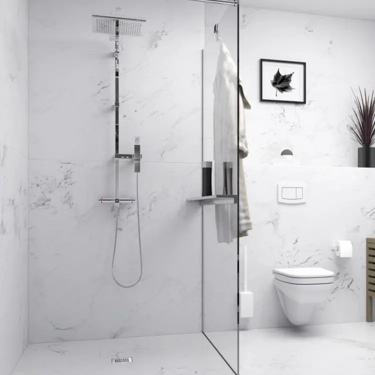 Due to its narrow design, it is particularly flexible and can be optimally integrated even in confined space situations. It greatly simplifies the planning and Installation of shower areas thanks to the factory-integrated technology and offers long-lasting Reliability.