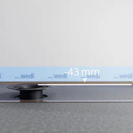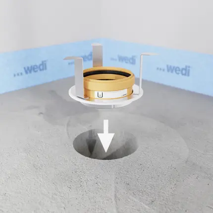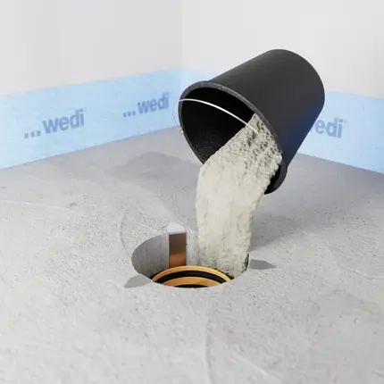 Systèmes de douche de plain-piedLes receveurs Fundo Solido de Wedi offrent une solution rapide et durable pour la réalisation de douches de plain-pied étanches sous revêtements PVC. Équipés d’un écoulement étanche, d’un noyau PET particulièrement résistant à la pression et d’une pente prédéfinie, ces receveurs réduisent considérablement le travail sur chaque chantier et font gagner un temps précieux aux entreprises de pose. Ci-dessous, la Montage est représentée avec un écoulement vertical avec coupe-feu.