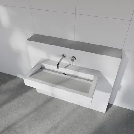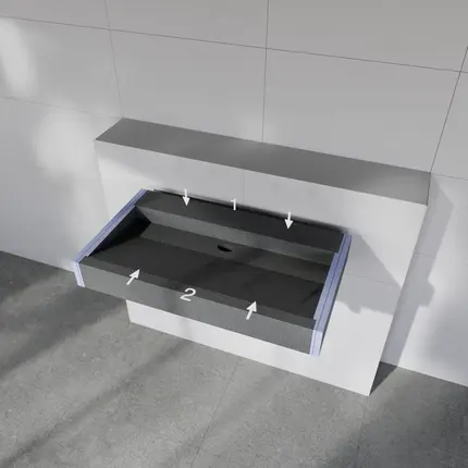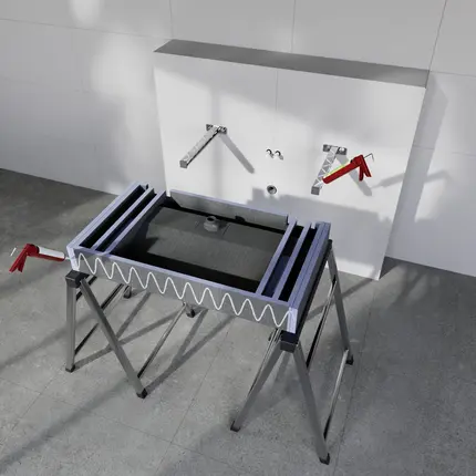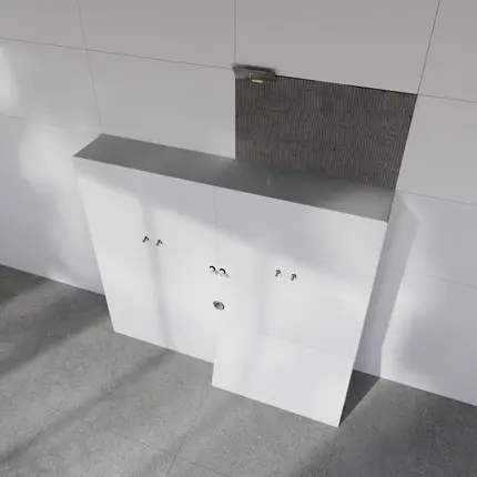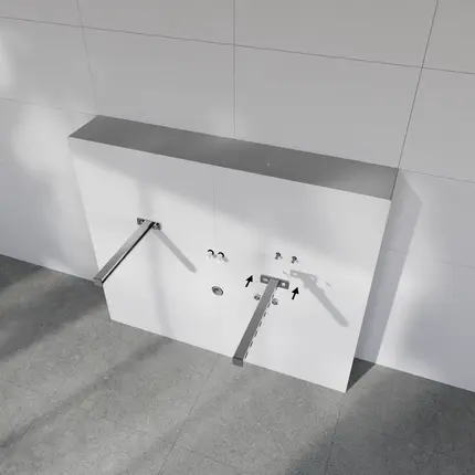 Un produit, d'innombrables possibilitésLe meuble vasque Sanbath vous offre une liberté maximale dans la planification de la salle de bain et une capacité de charge pouvant aller jusqu'à 150 kg. Il peut être carrelé, , la longueur peut être déterminée au millimètre et installé sans séparation visible..
