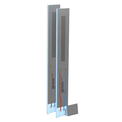 Des détails ingénieux : Les éléments muraux sont disponibles avec une niche intégrée wedi Sanwell. Et avec la cloison modulaire de douche wedi Sanwell, les conduites d’eau sont déjà intégrées. Il suffit de coller, et vous avez une base fiable pour les revêtement Top ou lpour du carrelage est prête.