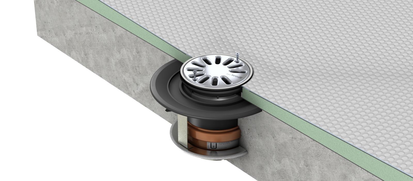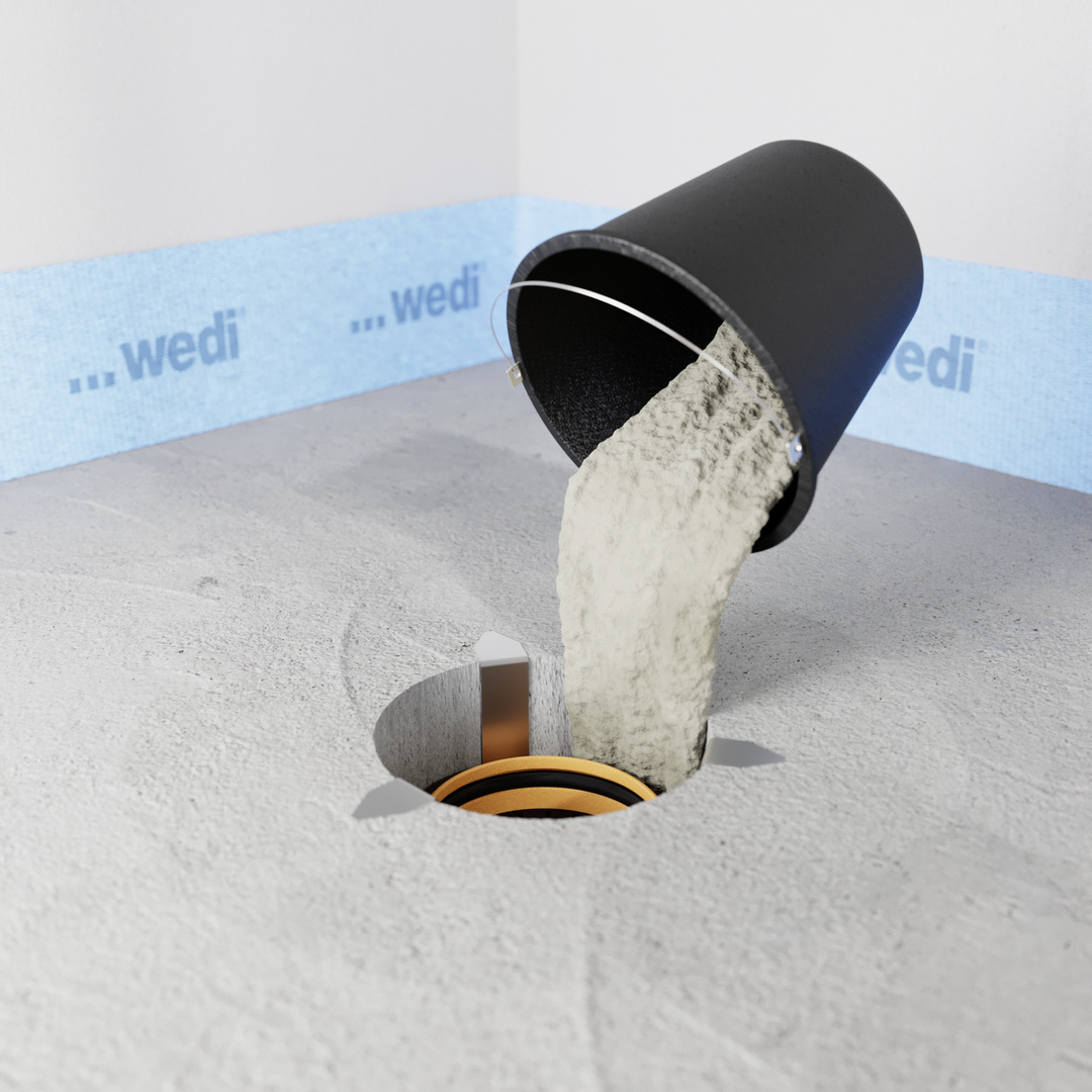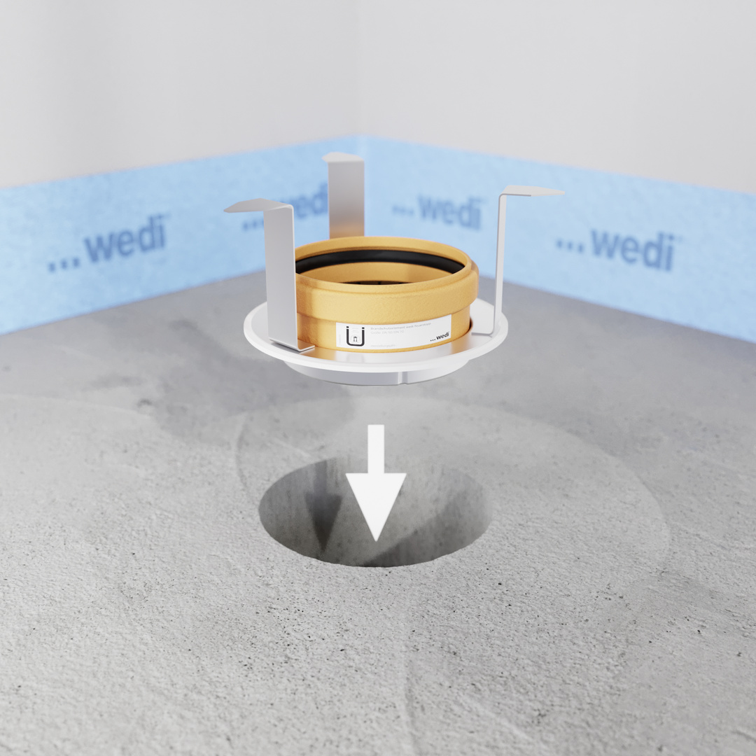 Gli elementi per pavimenti Fundo sola di wedi offrono una soluzione rapida e affidabile a lungo termine per la costruzione di docce impermeabili e a filo sotto rivestimenti in PVC. Dotati di uno scarico a pavimento ad alta densità, un nucleo in PET particolarmente resistente alla pressione e un Pendenza predefinito, richiedono un lavoro notevolmente inferiore in qualsiasi cantiere e quindi consentono di risparmiare molto tempo sulle operazioni di lavorazione. Il Montaggio è mostrato di seguito con un scarico verticale con tagliafuoco.