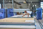 Ob ebenerdiger Bungalow, großzügiges Einfamilienhaus oder Doppelhaus – Bauherren haben bei Wolf System grundsätzlich die Wahl zwischen vier verschiedenen Ausbaustufen. Die gesamte architektonische Bandbreite kann vorab im Wolf System Bauherrenstudio besichtigt werden: Auf 1.800 m² befinden sich hier vier verschiedene, voll ausgestattete Musterhäuser. wedi Systemlösungen können ab Ausbaustufe A3 in die Bäder integriert werden. Die individuelle Badplanung erfolgt im Zuge der Bemusterung in enger Abstimmung zwischen den Bauherren und den für Wolf System tätigen, freien Architekten. Ob die bewährten bodengleichen wedi Fundo Duschelemente oder großflächige Wand- und Bodenelemente: Dank des hohen Vorfertigungsgrads der wedi Lösungen entfallen bei der Erstellung des Bades viele zeitaufwändige und risikoreiche Arbeitsschritte. So ist zum Beispiel das wedi Fundo Duschelement bereits werkseitig abgedichtet und hat ein vorgegebenes Gefälle. Auch der Ablauf bzw. die Ablaufaufnahme ist schon integriert. In vielen unterschiedlichen Formen und sowohl mit Linien- als auch Punktentwässerung dient die Fundo Serie als Basis für die individuelle Duschplatzgestaltung. „Im Vergleich zur herkömmlichen Erstellung der Dusche mit Estrich werden bei dem Einsatz der vorgefertigten Duschsysteme bis zu 50 % Zeit gespart“, erklärt Daniel Meiners. „Ein Aspekt, der letztlich den gesamten Bauprozess der Fertighäuser beschleunigt und optimiert.“ Sämtliche Elemente sind nicht nur absolut wasserdicht im Gesamtsystem, sondern auch extrem widerstandsfähig – darauf gibt der Hersteller eine zehnjährige Garantie. Die wedi Bauplatten mit einem Kern aus HFCKW-freiem, extrudiertem Polystyrol-Hartschaum eignen sich ideal als Basis für Putze, Fliesen und Wandverkleidungen aller Art. Wolf System Kunden können somit das Badezimmer frei nach ihren Wünschen gestalten. Auch bei Herstellung und Installation beweisen die wedi Systemlösungen ihre Stärken: Durch die millimetergenaue Planung kann neben Materialkosten auch das Risiko von Montagefehlern erheblich reduziert werden. Ein weiterer Vorteil der wedi Platten ist ihr geringes Eigengewicht bei gleichzeitig sehr hoher Stabilität – für die Beplankung durch die Roboter in den Produktionshallen eine optimale Voraussetzung.