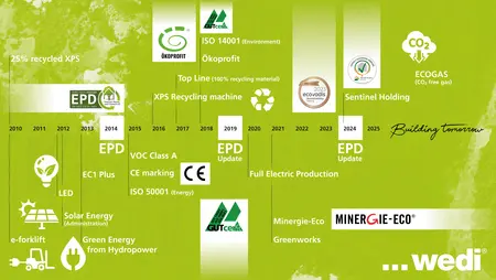 Wir bei wedi haben die Relevanz und Wichtigkeit dieser Zertifizierungen früh erkannt. Seit dem Beginn der 2010er-Jahre lassen wir uns deshalb fortlaufend und umfassend durchmessen, auditieren und prüfen, was die Nachhaltigkeit unserer Prozesse und Produkte angeht. Dabei wird nicht nur jeweils der Status Quo, sondern auch die kontinuierliche Verbesserung bewertet.